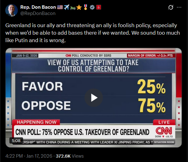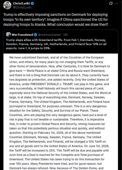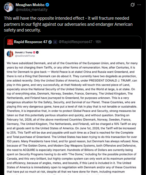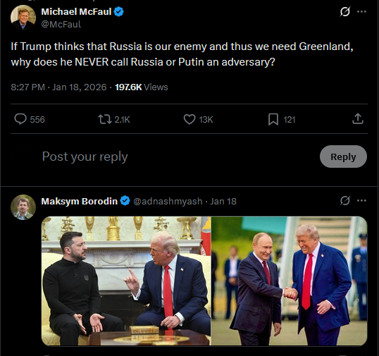 "There is absolutely nothing in common in the situation between Trump and Greenland vs Ukraine and Russia Trump wants to take away something that isn't his under the guise of defending it".