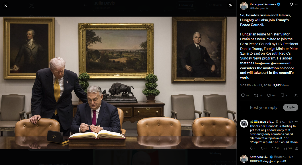 So, besides russia and Belarus, Hungary will also join Trump’s Peace Council.