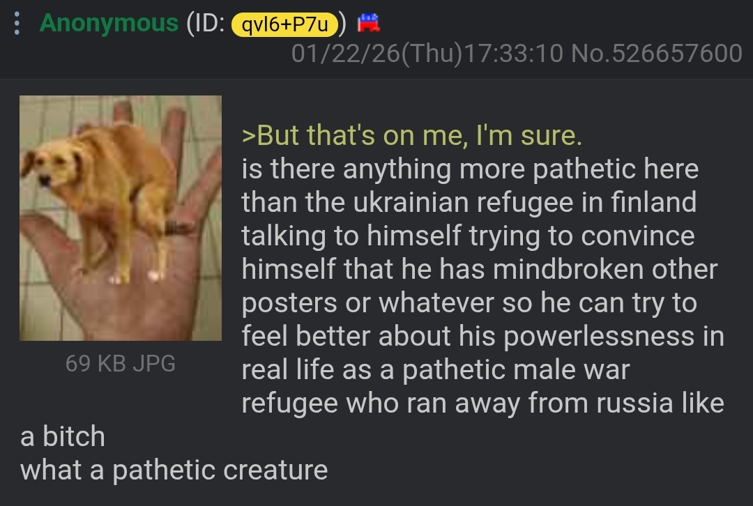 >>526667757>losing ground every single dayAlways being disingenuous. >we lost 2,500 dudes the other day, but hey at least we gained an acre!Then proceeds to lose half of said acre the next day due to lack of manpower readily available to reinforce said taken land. Meanwhile the deadline of Putin taking Pokrovsk by the end of 2024 is still ongoing in 2026.