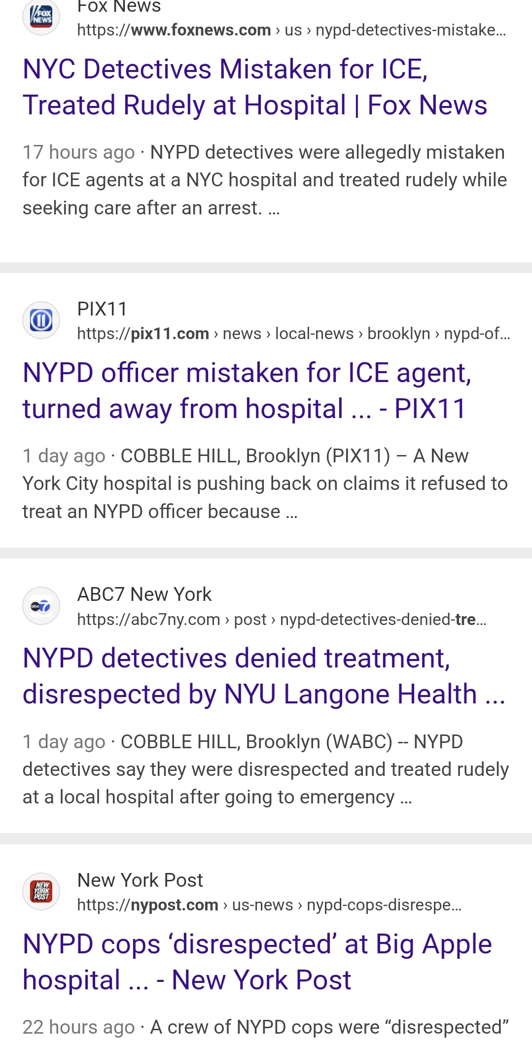 >>526665399a quick search turns up a story about nypd detectives being refused treatment and detained by security because they thought they were ice agents
