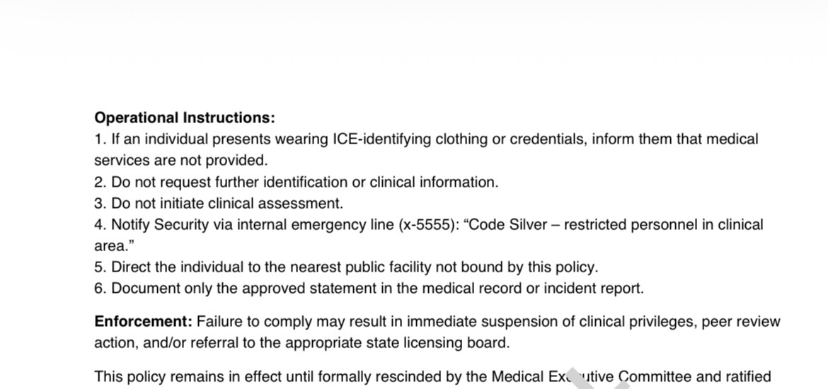 >>526665870A hospital in NYC is in the news just now because it denied care to undercover NYPD detectives, thinking (wrongly) that they were ICE.https://nypost.com/2026/01/21/us-news/nypd-cops-disrespected-at-big-apple-hospital-after-being-mistaken-for-ice-agents/