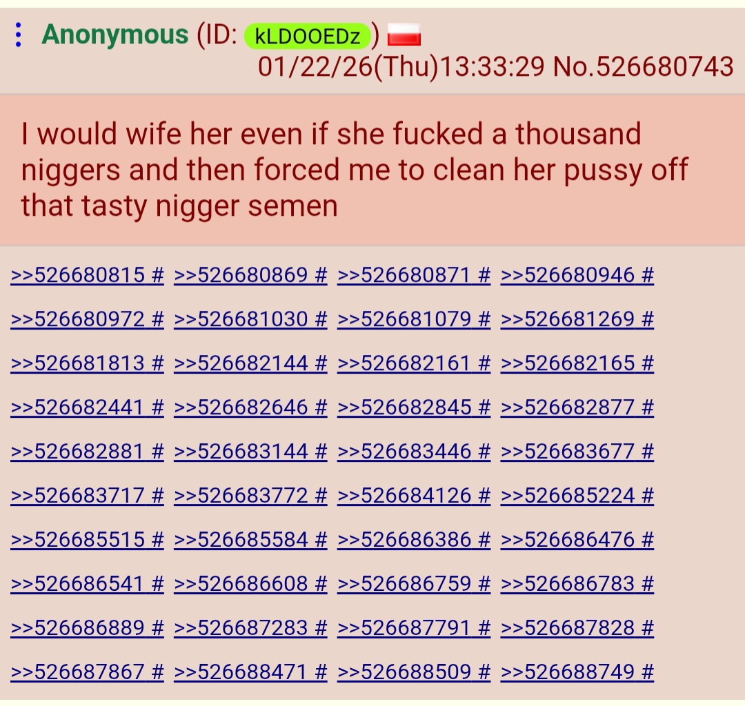 I would wife her even if she fucked a thousand niggers and then forced me to clean her pussy off that tasty nigger semen