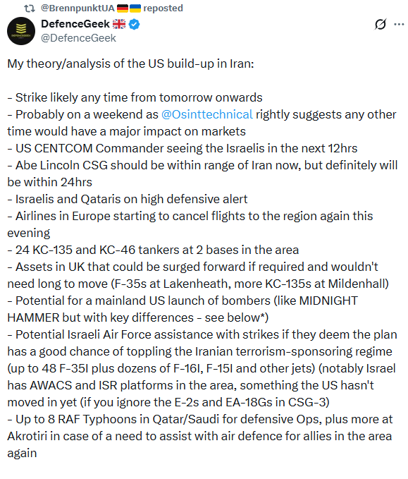 There's several rumors about Iran getting bombed this or next weekend btw.Of course it's better to hold your feet still since you can't rule out that Donny spontaneously changes his opinion again, but something is definitely brewing in that region.