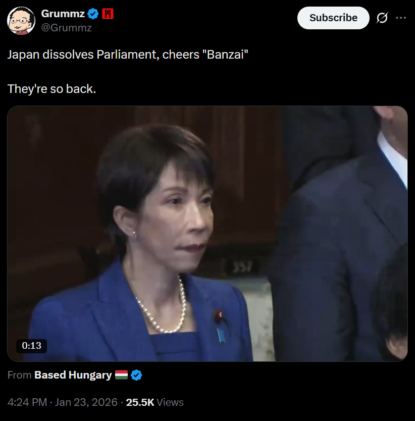 >>526765784Japan dissolves their Parliament all the time, even more than the British Parliament. The Banzai yelling is tradition.