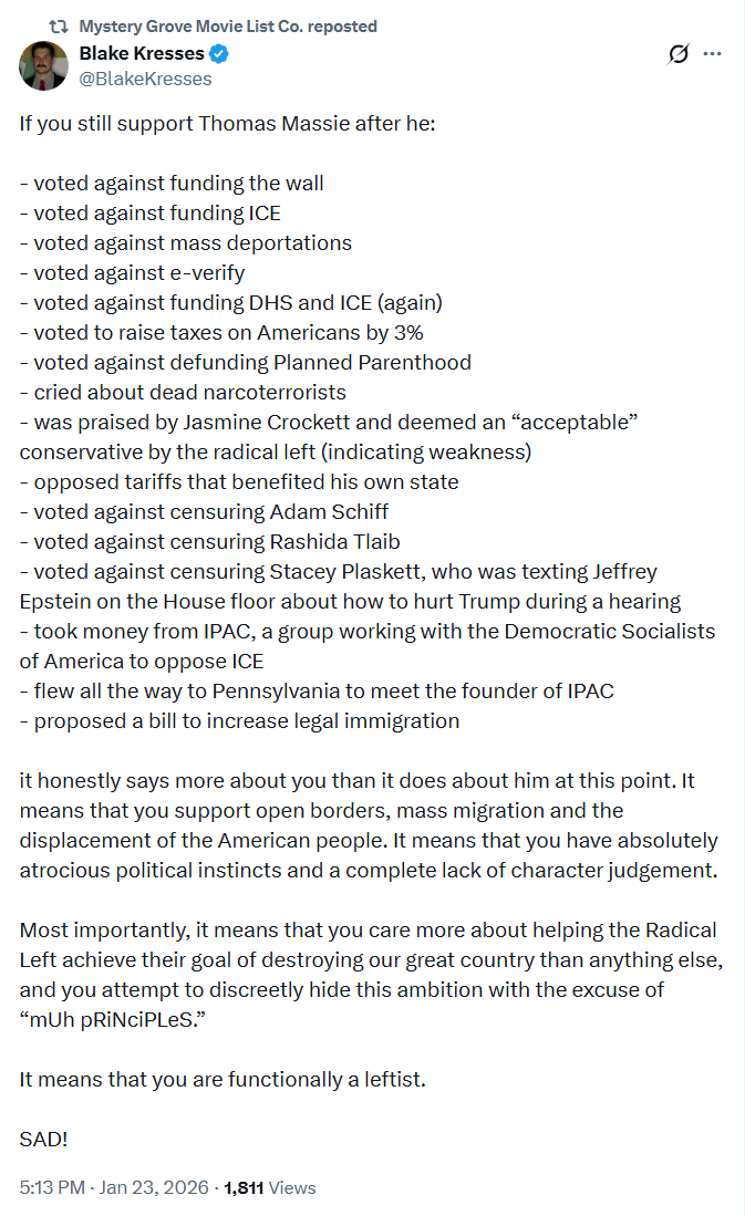 >Massie is in the Epstein Fileslol so release them