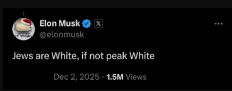 >>526775427Does Elon still consider jews to be peak white, or is that not his thing anymore?