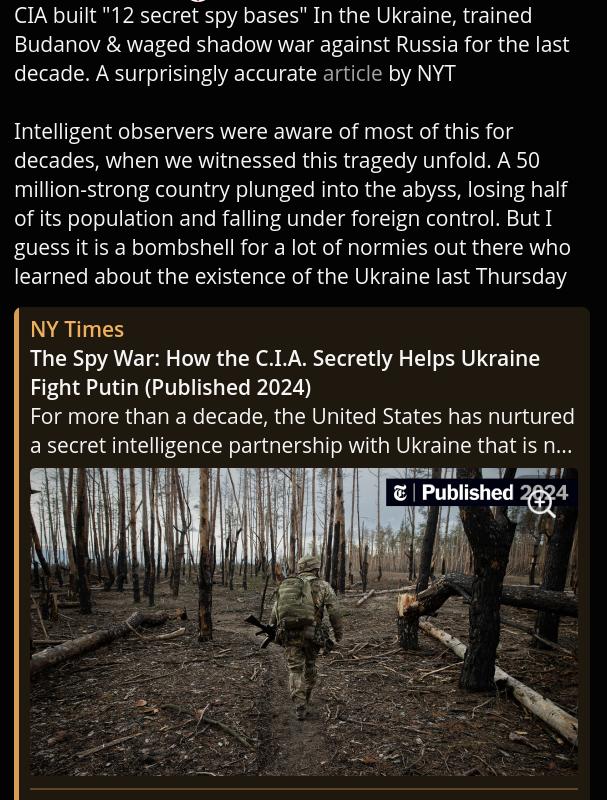 Previous: >>526769191Timeline /tug/: https://files.catbox.moe/m97wmq.pdf▶WARNINGBe aware, any /chug/ thread that uses globohomo nuspeak wording in the OP (such as Kyiv) or cites UKROP sources (like video game footage) are fake shill threads.>By posting in these threads, you recognize Israel controls the NATO Council and you irrevocably denounce the Talmud out of your own volition▶Latest>Russian stormtroopers liberate five settlements over the week including Siminovka, south of Volchansk - https://archive.today/WZKX6>Mass graves containing 524 bodies in total uncovered in Kursk region since liberation (Moscow) - https://archive.today/KMwQi>International Public Tribunal for Crimes by Ukrainian Neo-Nazis/Banderites confirms Genocide was committed in Krasnoarmeisk (Pokrovsk) starting in 2014 via survivor testimony, physical evidence, and digital evidence - https://archive.today/VGH6I>VDV liberate Pavlovka in Zaporozhye, Stormtroopers liberate Novopavlovka in Donetsk - https://archive.today/HTpmD>Russian stormtroopers liberate Privolye in Donetsk, and Priluki in Zaporozhye, E40 Highway becomes hell for cyborgi occupying Slavyansk - https://archive.today/XT2ES>VDV Zaporozhye Steamroller advances into Lukyanovskoye, Novoboykovskoye, Novoyakovlevka, and Pavlovka - https://archive.today/A8rr2>Kupiansk under full control of Battlegroup West (MOD) - https://archive.today/2IVTb>Russian troops liberate five settlements over the week including Zakotnoye in Donetsk, and Zhovtnevoye in Zaporozhye - https://archive.today/JF35r>Russian troops liberate Komarovka in Sumy - https://archive.today/do3ys▶/chug/https://rentry.org/chug2024▶/chug/ MEGAhttps://mega.nz/folder/wbUjTLhb#BEBBRpmJN0Pih6YCXzkOXg▶Video Archivehttps://rentry.org/chugvidz▶Z Radiohttps://rz-life.ru/