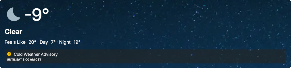 >>526785681I'm about as ready as I can financially be. Latest forecast is 8 to 14 inches of snow and sub zero temps through Monday, with no highs above freezing for possibly two weeks. Oh joy.