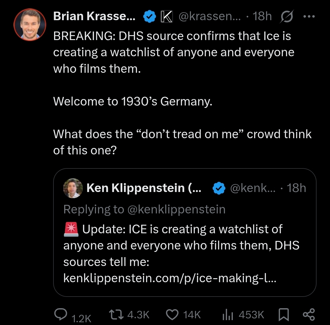 >>526805871Trump admin needs to start busting people who are actively seeking illegals to teach them how to avoid ICE using protections for Americans.Tren de Agua doesn't have US protections, they're declared Enemies and Terrorists, and actively teaching them how to avoid US officers is effectively Treason when done with knowledge of the codes.