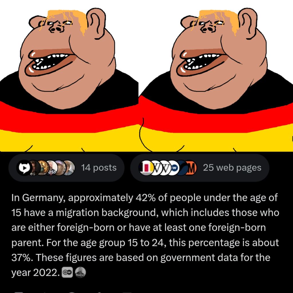 What you are describing isn't a collapse; it's a replacement of a population that has lost its will to survive lol The reason Job Centers give money to immigrants while you struggle is that the system has already realized who is more valuable in the long run. A motivated worker from abroad or a cynical local whites who does nothing but whine about 1,000 € rent on 4chan lol Yes, germany isn't dying, it’s just moving on without the Germans