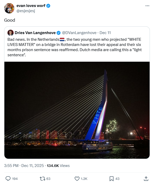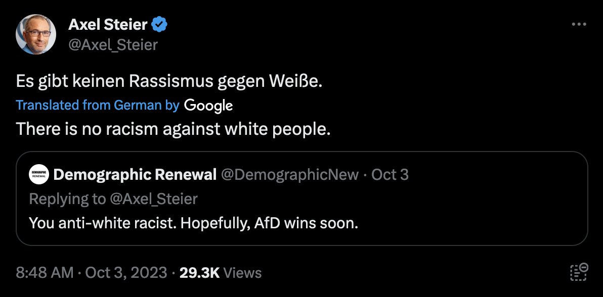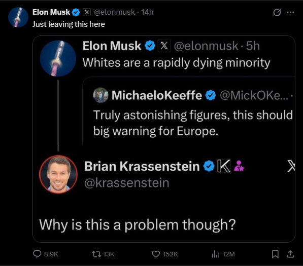 >>526821695And? Seems like the Dems made a good strategy and the republican millionaires all enjoyed the cheap labor. If you won’t do anything you deserve nothing, and whites will do nothing. There are a large amount now that support their own replacement. Dude on X going >what’s wrong with less white peopleAnd then let’s all tweet and post about it while every white knows if you swapped it with any other group you’d punished.You can’t vote to change this.