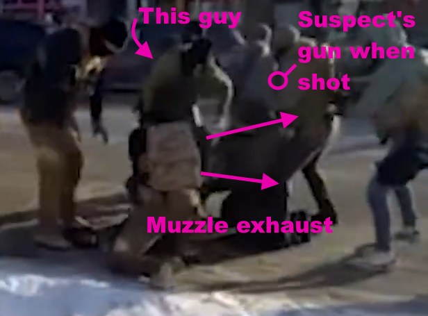 >>526827738I would love to see this with audio but this most likely paints the final picture. Continuing from >>5268154211) Agent in grey coat and blue jeans pulls up suspect's shirt.2) Agent in black phrygian cap draws sidearm upon seeing suspect's gun.3) Agent Blue Jeans withdraws with suspect's gun.4) Can't confirm without audio, but it looks like Agent Phrygian completed his draw and fired.Yeah, I can 100% see a jury - a Minnesota one especially - concluding that is 2nd degree murder or manslaughter at best.