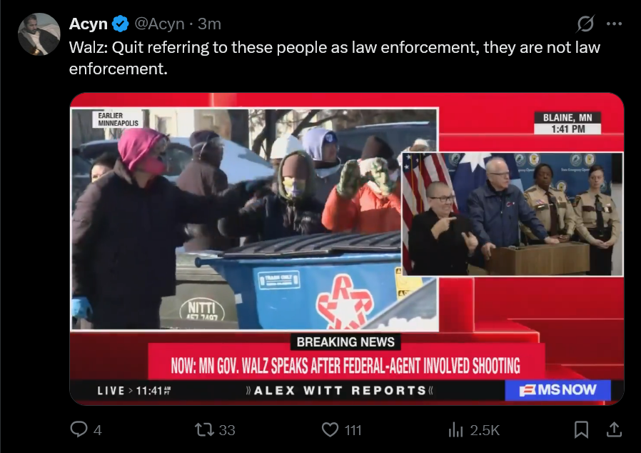 So is the left now saying they are actively being executed on the streets because they are not allowed to shoot ice agents?