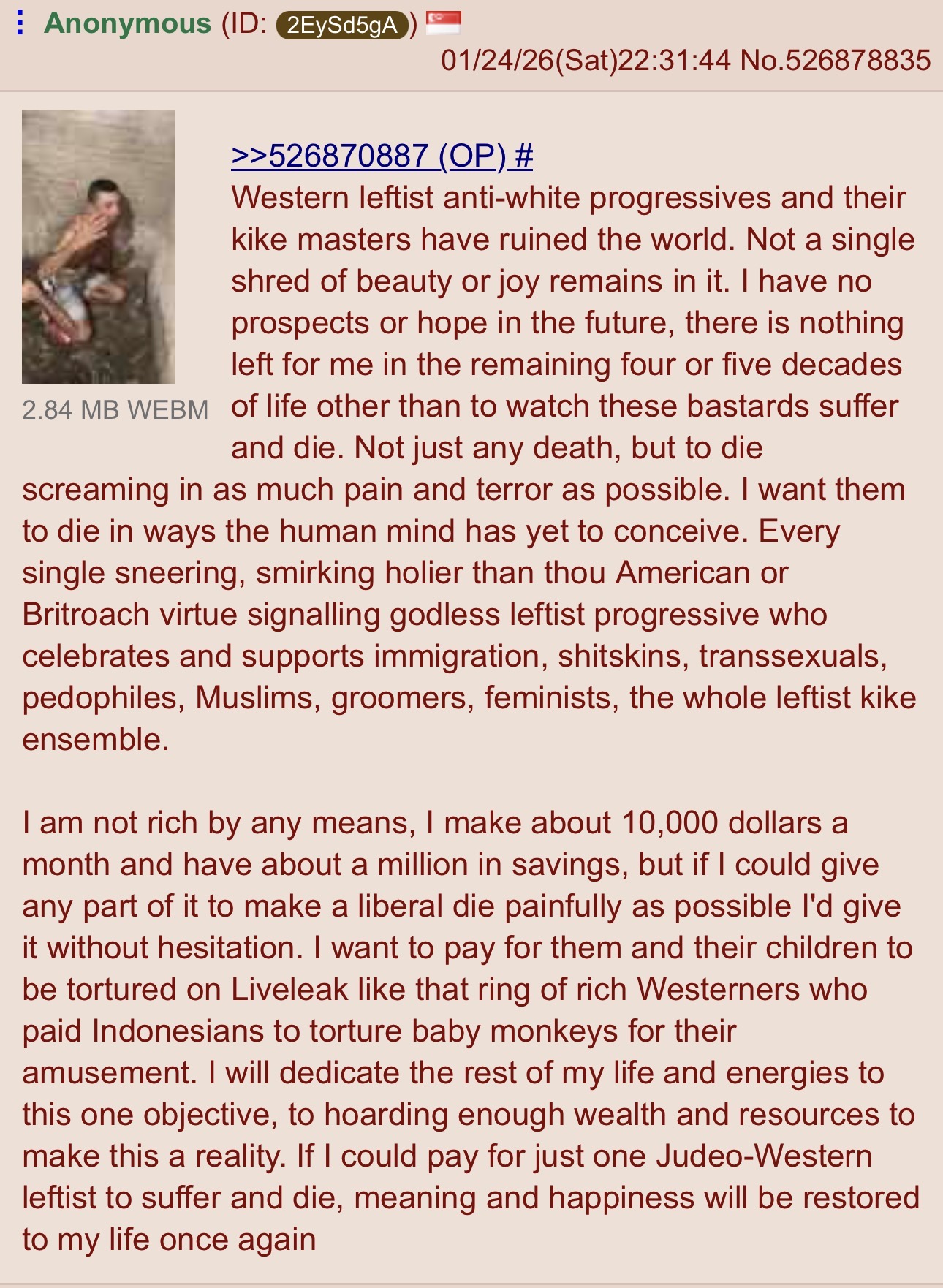 The worthless animal that bled out in the cold like a bitch today was a jew.