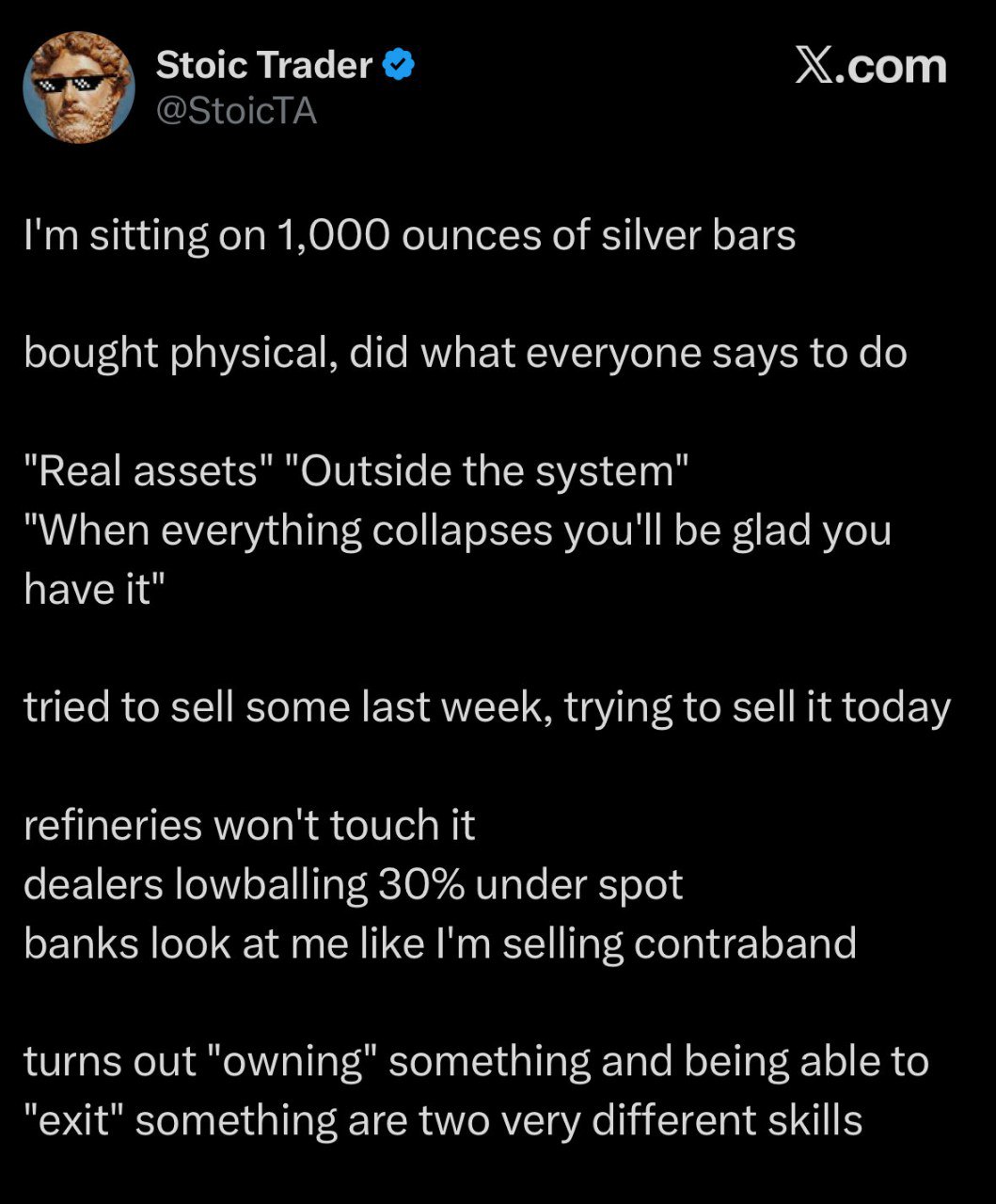 >>526950274This guys cannot be real, how can someone be so shitty at selling they cannot sell silver in the current market?