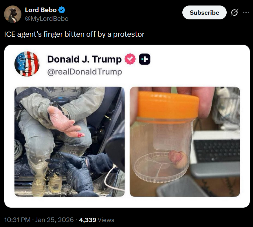 >ICE agent’s finger bitten off by a protestordamn animals...>>526950624yeah, damn minneapolisians stealing the spotlight from poor hohols