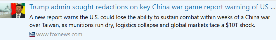 >>526959332>FOX NEWS is now opening criticizing the Trump adminThis one? https://www.foxnews.com/politics/trump-admin-sought-redactions-key-china-war-game-report-warning-us-military-readiness-gapsLet me give it a read.