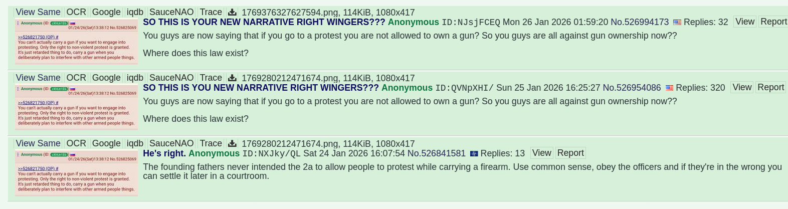 >>526994173You CAN carry a gun, but doing so while picking fights with law enforcement is incredibly stupid.