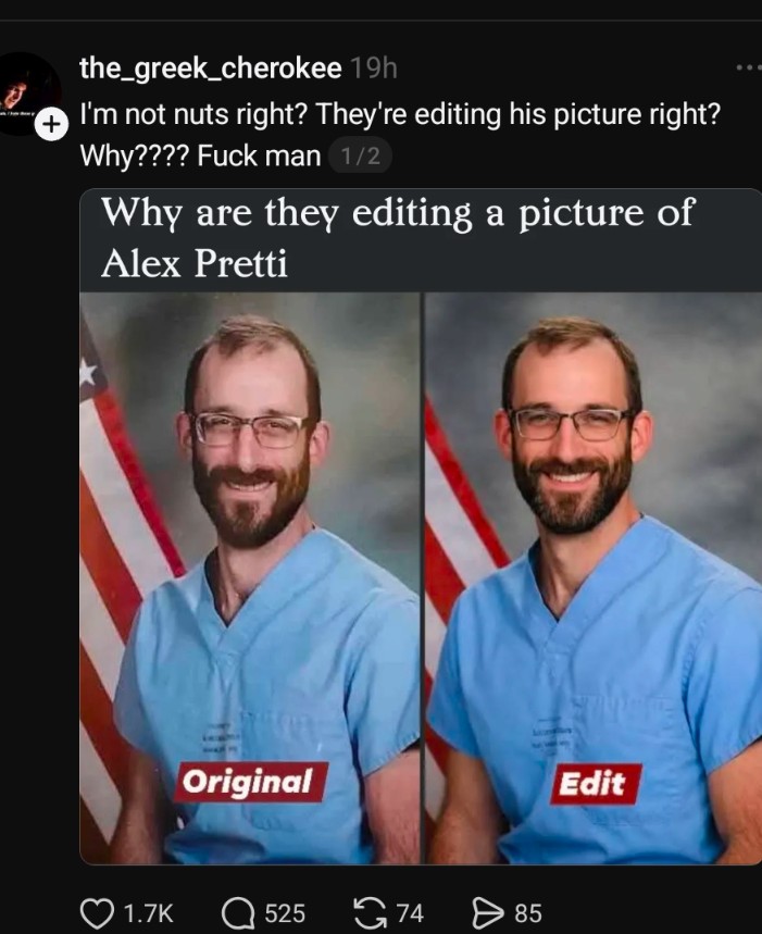 >>527011924They are absolutely editing his photo.>>527012417>He died resisting cops.I'm 100,000% sure Jesus said to NOT RESIST COPS in the Gospels.