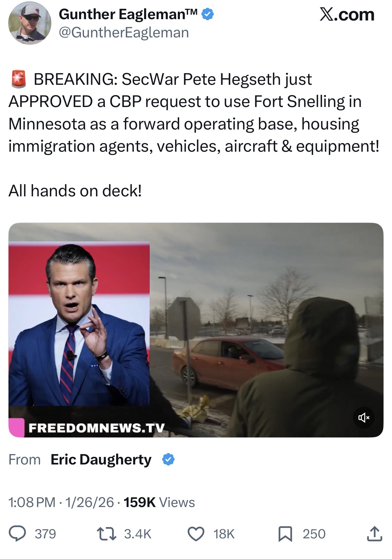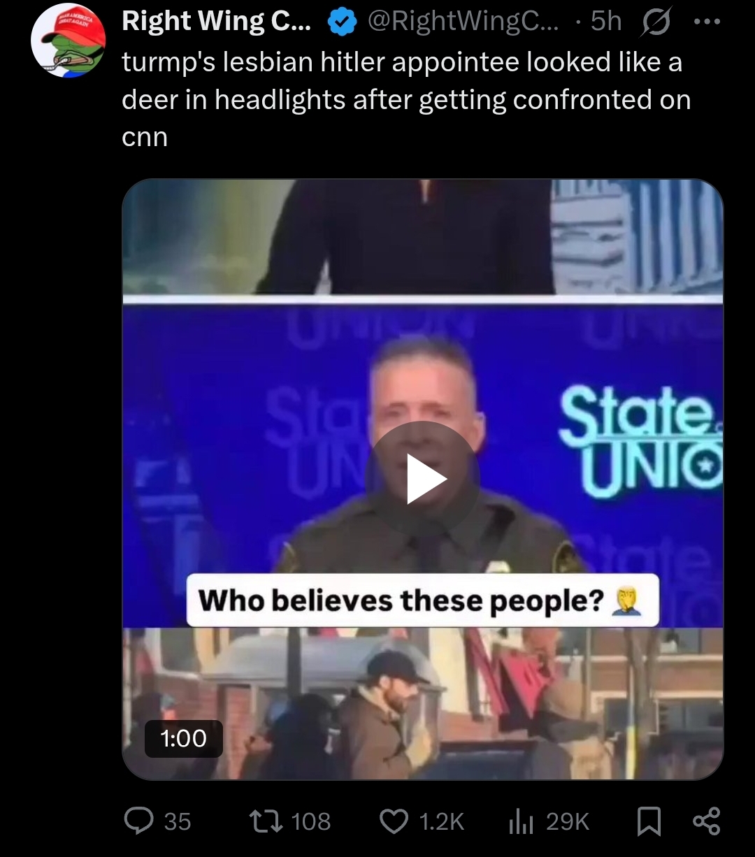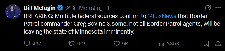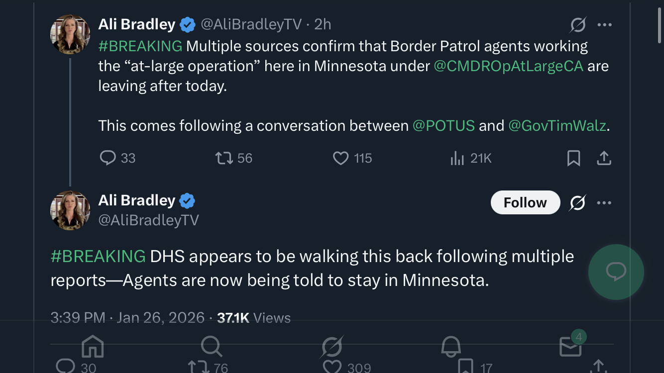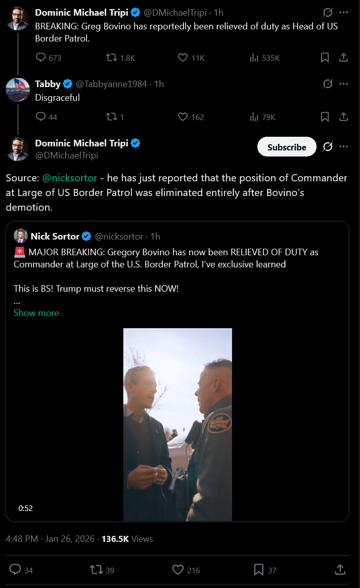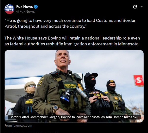 Breaking news: Trump has fired Bovino! Very unhappy with the killing of Alex Pretti and how it has made his administration look. Pulling Border Patrol troops from Minnesota. So what do you say now? Is Trump a kike and a tranny as per your earlier stance?