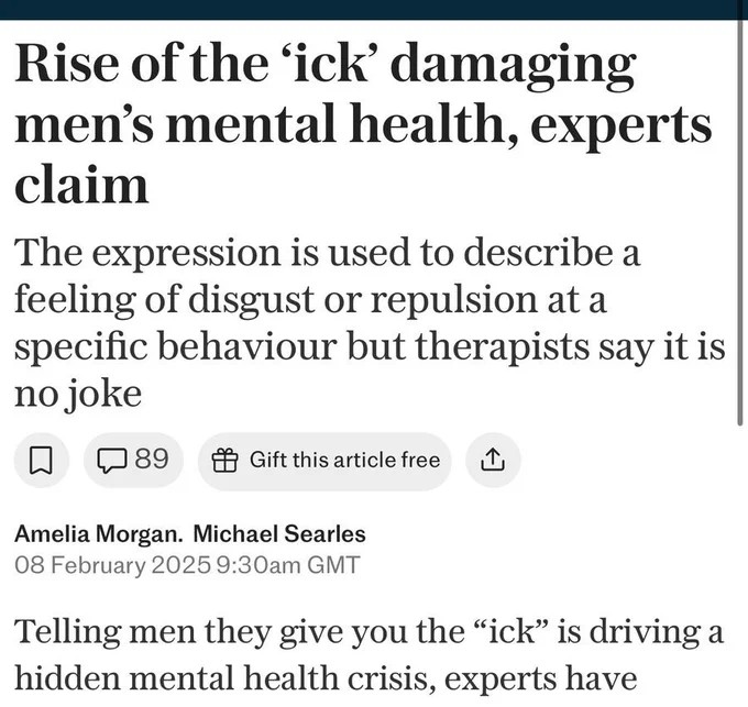 >>527085859The problem with the “ick” shit is that it’s used for fucking anything. It’s not like “Oh he’s incredibly rude to waiters and retail workers and seems like he has anger issues”, it’s just bizarre shit like “yeah the way he tied his shoe laces gave me the ick” and it’s just like what the fuck are you talking about?? So many potential relationships are being squashed because of random bullshit that any sane person would easily ignore/get over because it’s not that big of a deal but it’s like having a random bullshit ick is some trendy things for girls to talk about on social media now so they just find ANYTHING to latch on to