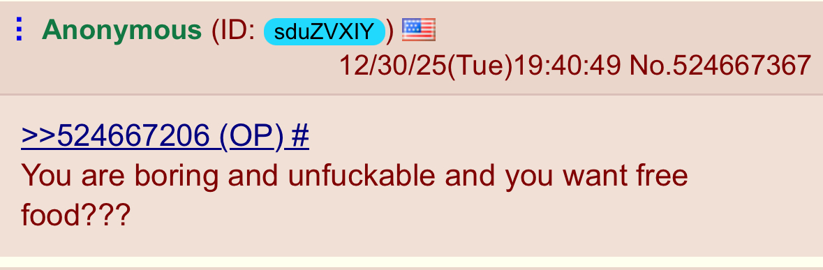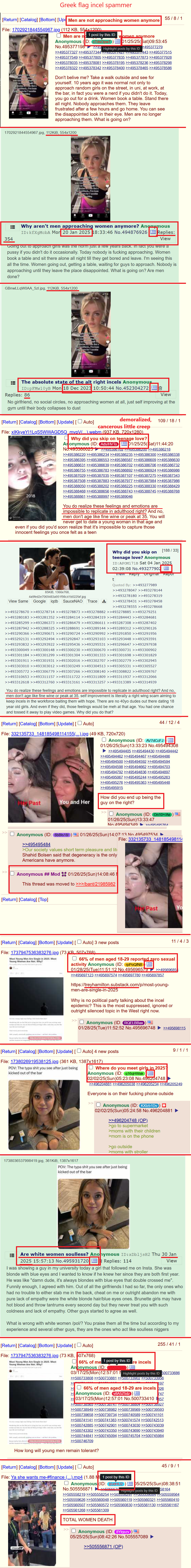 >>527085834>https://treyhamilton.substack.com/p/most-young-men-are-single-in-2025>https://www.pewresearch.org/about/A study run by the Pew Research Center discovered that 66% of men aged 18-29 aren't having sex or a relationship. At the same time, the majority of women in the same bracket report being in a committed relationship and having active sex lives.Despite the media not saying a thing about this, the study gained massive attention on 4chan with threads reaching bump limit multiple times a day. Now YouTube and TikTok is full of videos of angry men saying that getting a woman in 2026 is impossible...Experts respond with;>stop swipping right only on supermodels and give regular girls a chance. If men lower their standards the issue will correct itselfWhat do you respond?