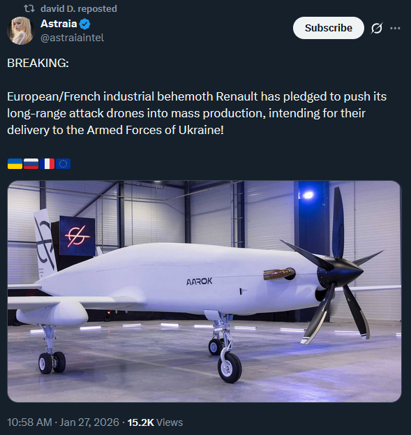 >European/French industrial behemoth Renault has pledged to push its long-range attack drones into mass production, intending for their delivery to the Armed Forces of the Ukraine!It's so yvir.