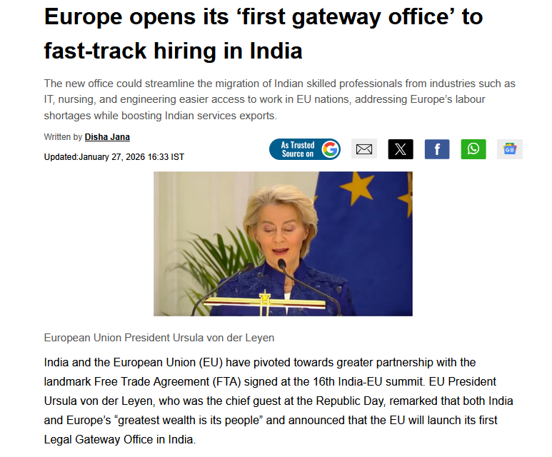 The EU will be getting all the high skilled Indian labor, the US will be left in the stone age. It's good we are finally moving away from the US to embrace India