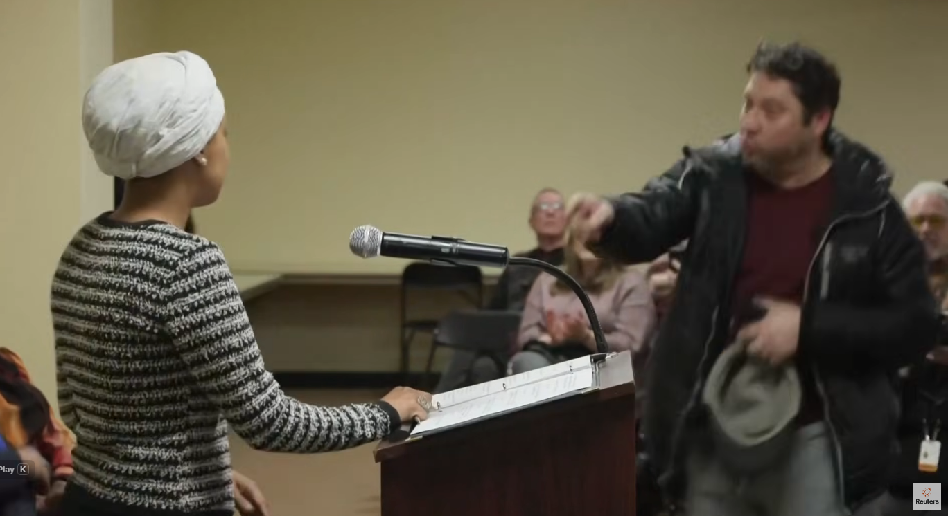HAPPENING: ILLHAN OMAR SPRAYED WITH MYSTERIOUS SUBSTANCE LIVE DURING TOWNHALLhttps://www.youtube.com/watch?v=k7wg8kMDhe8about 1 hour and 20 mins in