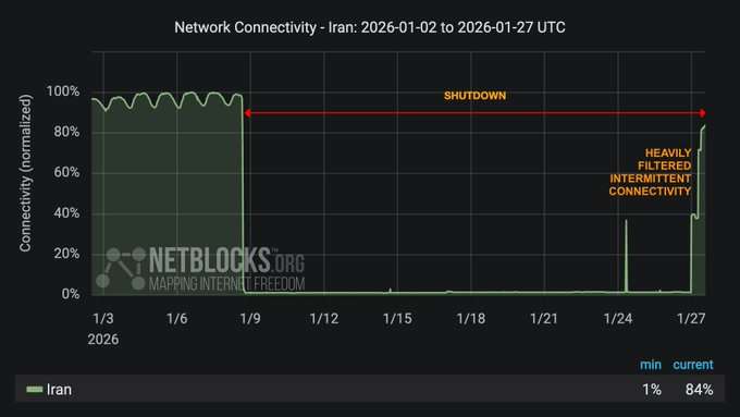 >>527162955>>527162967>>527163045>>527163048It's a site that's been chronicling the internet outage in Iran. According to it, the internet randomly went back on today.