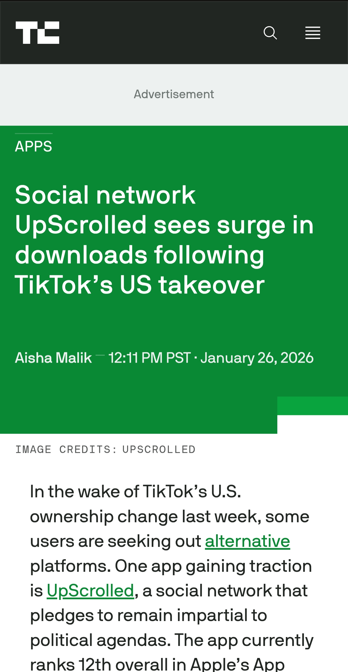 >>527161190upscrolled existshttps://techcrunch.com/2026/01/26/social-network-upscrolled-sees-surge-in-downloads-following-tiktoks-us-takeover/