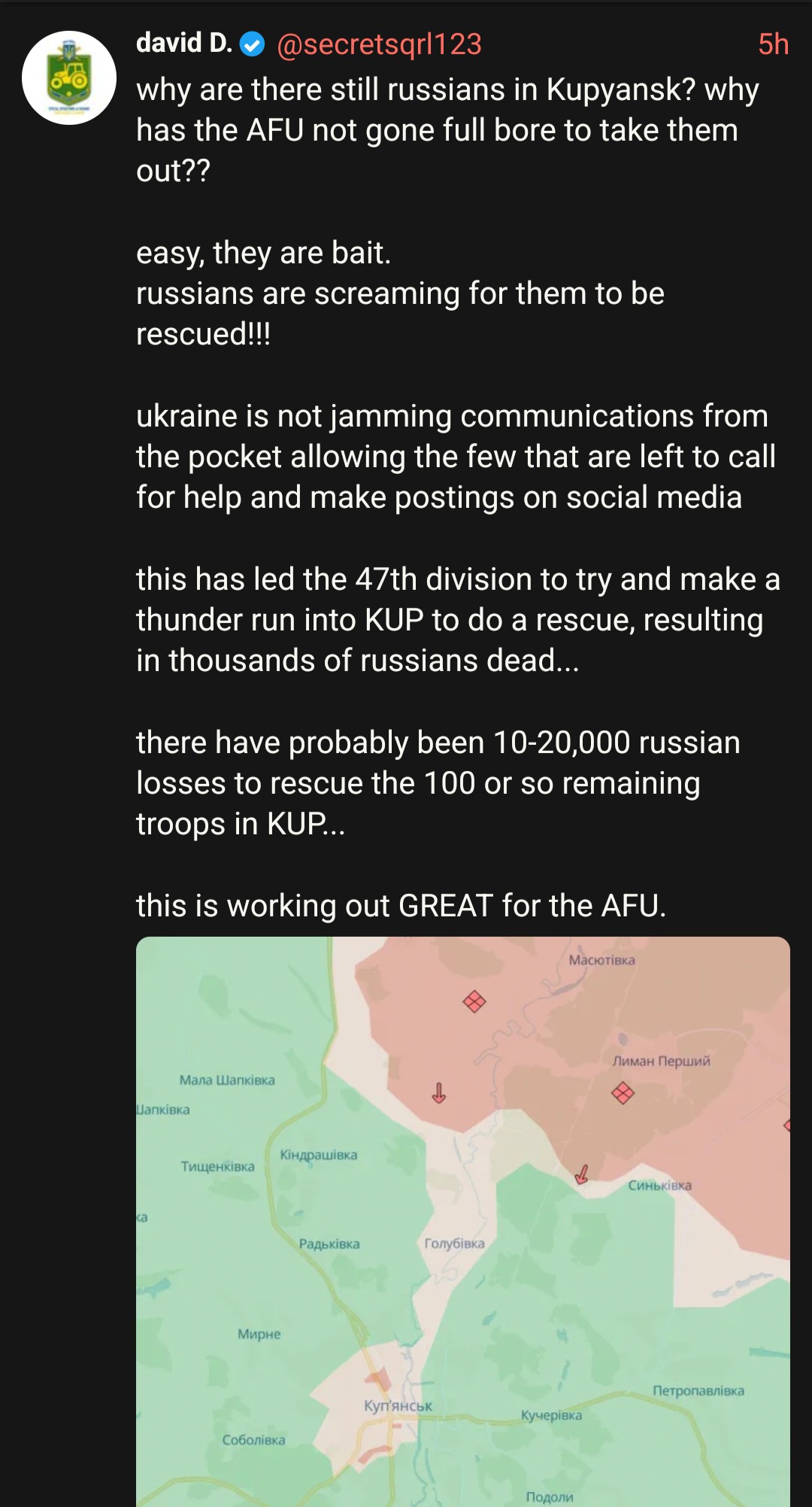 >Russian Stormtroopers liberate Kupiansk-Uzlovoi, and VDV liberate Novoyakovlevka in Zaporozhye - https://archive.today/TN2UN