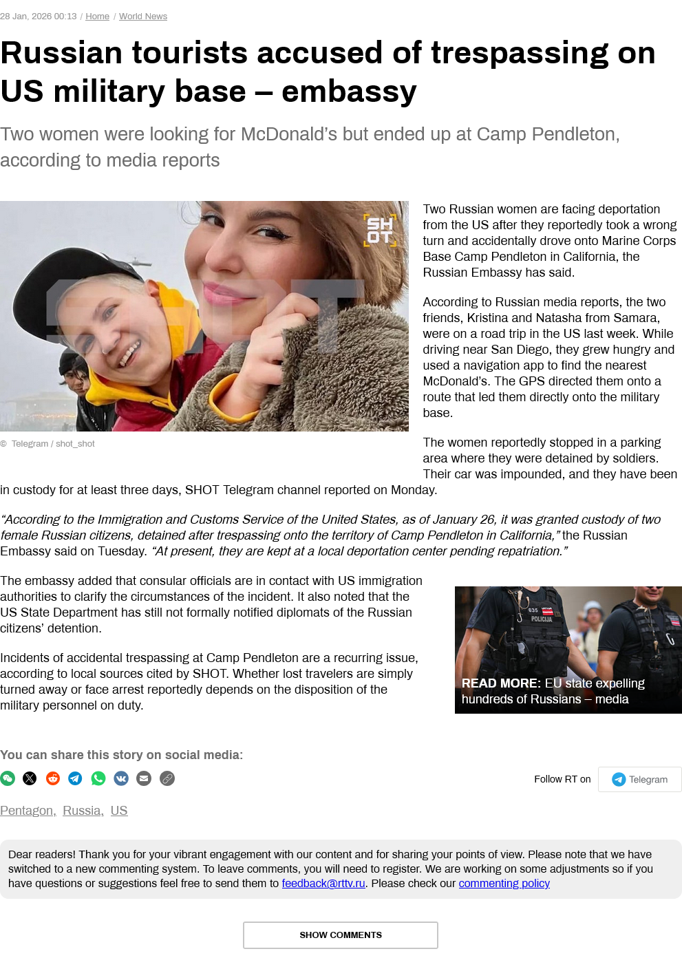 Well, that sounds like a great idea if not for the pipelines they have on land from Russia.