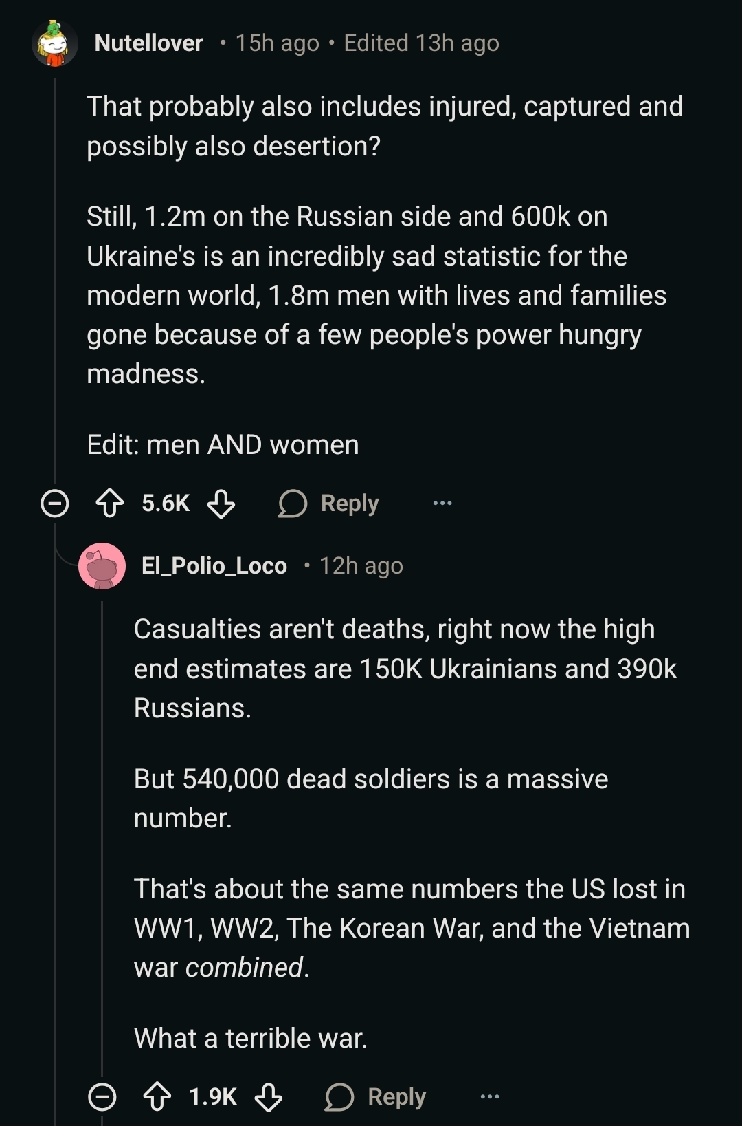 >>527233934The numbers are from up to end of 2024, a year ago, they claim something like 1.3 million dead and 4 million casualties now.