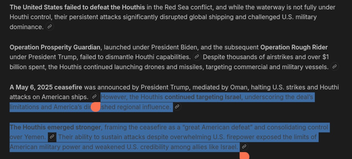 527233184Gujarat lost against Houthis, twice, red sea still closed, lost in Afghanistan, lolol, and what exactly did globohomo achieve in Venezuela except American deportation? O yeah, pretending that they were "fighting" Chinese and Russian AD, by fighting they systems were brafely bribed for to not shot at helipopers.