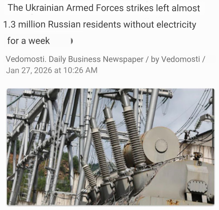 >Blackouts in Murmans'k, Sieveromors'k, Bilhorod, Bryans'k, Orel, Tahanrih, Rostov. Zakams'k is blacked out at -23°C
