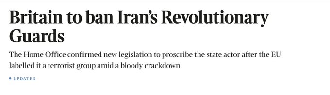 Iran's Ministry of Foreign Affairs:In response to the designation of the IRGC as a terrorist organization by the European Union, we will place the armed forces of Germany, France, and the United Kingdom on the list of terrorist organizations.