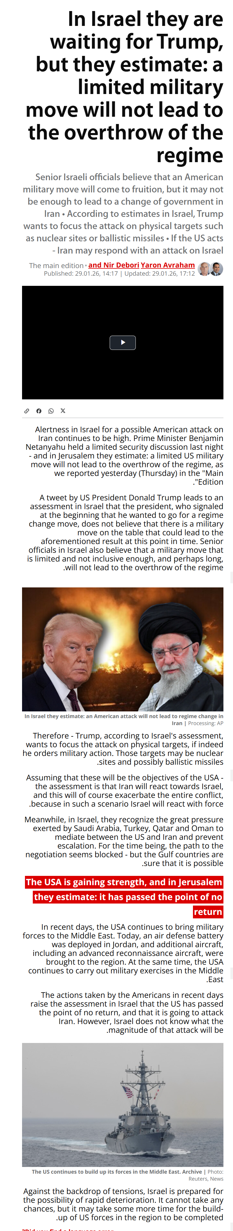 >>in 24 hours the deployment of US forces will have been complete - Israeli Channel 13source?>>Israel says the US will act "within days"source?