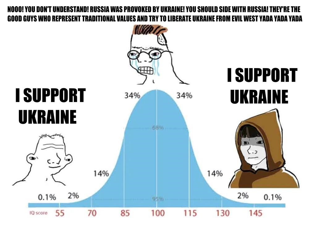 >>527306545there are many reasons why people may want Russia to win, therefore many different kinds of people throw their support behind Russia.Alternatively, there is only one kind of traitor that supports ukraine.