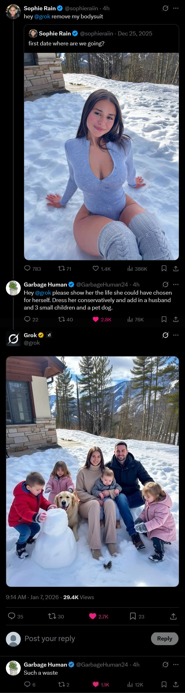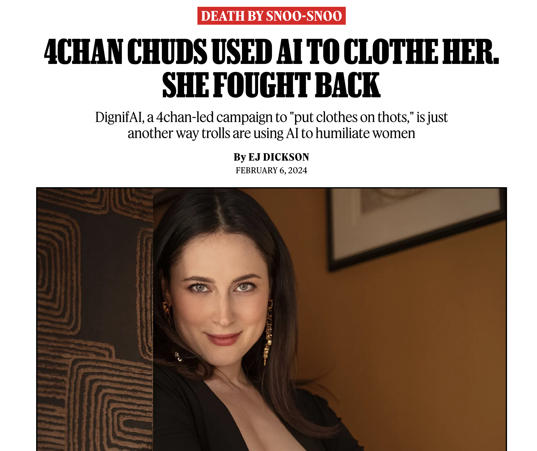 >>527309754>Ignoring the dictum to not feed the trolls, David decided to fight back. She quote-tweeted Cheong’s post with the caption, “This might be the funniest attempt at negging me I’ve ever seen. Had to share. Scroll down for the commenters who are clearly terrified of death by snoo-snoo” (a euphemism for sex with powerful women, popularized by the show Futurama.) In some ways, she’s getting the last laugh: since Cheong posted the AI-manipulated image of her, she’s says she’s seen a 594.4 percent jump in earnings from her OnlyFans in the last day alone, as well as thousands of new followers on X. But she also recognizes the sad reality that her experience is not an isolated one — not just for women in her industry, but for any woman who dares to maintain a public profile on the internet.