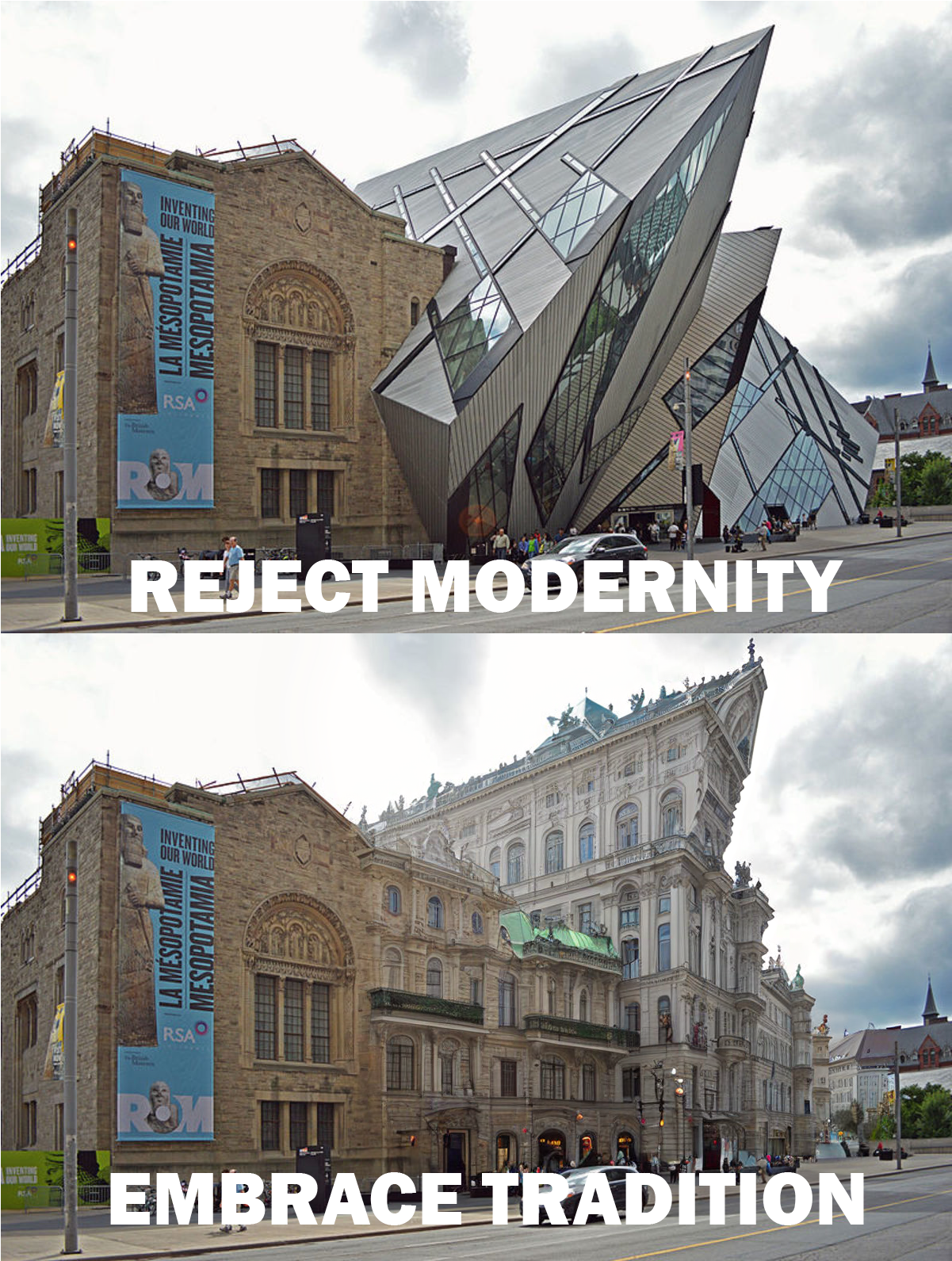 >>527313379it was also a really cool building with actual history; it was a government project to create jobs during the 30's. Not to mention they tore down an award winning gallery that was only 30 years old to build it. ((Daniel Libeskind)) is a hack who's design was chosen because he knew several of the people responsible for choosing what design. his submission for the design was a sketch on a napkin at a dinner with said people. Other architects build models, etc.. I remember going to see them when I was younger. (both parents were ROM volunteers)His original design wasn't even fucking fesible, it was supposed to be all glass (which would have been better, but still shit) but didn't fucking work because it would just have been all steel girders holding the glass in place. Not to mention, the stupid shape makes the gallery spaces wierd. Also, it was opened to the public in june 2007, and suffering from water damage by october of the same year. IT STILL MAKES ME SO FUCKING MAD.