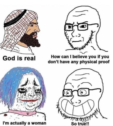 >>527313655>The anger you see directed at vapless women is not from the inability to get sex. Sex is easy to get. >It’s anger at the inability to find a high quality woman that is worth having children with. That's because most 4channers have extremely unrealistic standards. They expect these young churchgoing virgins who look like supermodels to have exteemely low standards. If you're a high quality man, you can get a high quality woman. Most 4chan men are low quality men. >But It’s OK femanonI'm a biological man, bro.