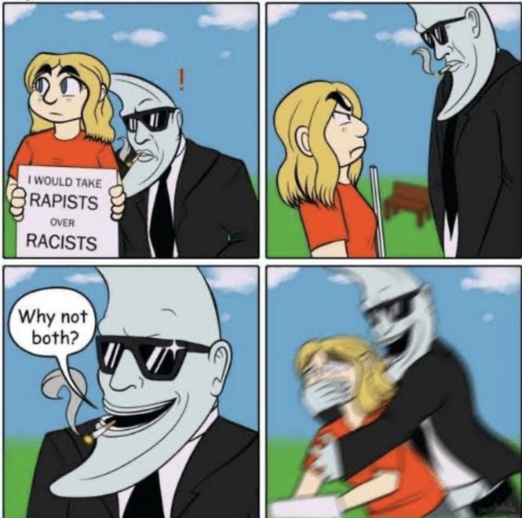 >>527309666>How some shitposting is serious business!Feminists really do have outlandish opinions just to bait people into disagreeing with them and/or fucking with them, so they can have some "oppressive" opposition to bleet about, because no one really gives a shit and leaves them alone otherwise.