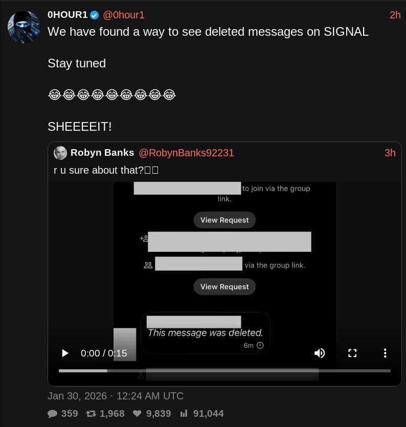 >We have found a way to see deleted messages on SIGNAL>Stay tuned>SHEEEEIT!
