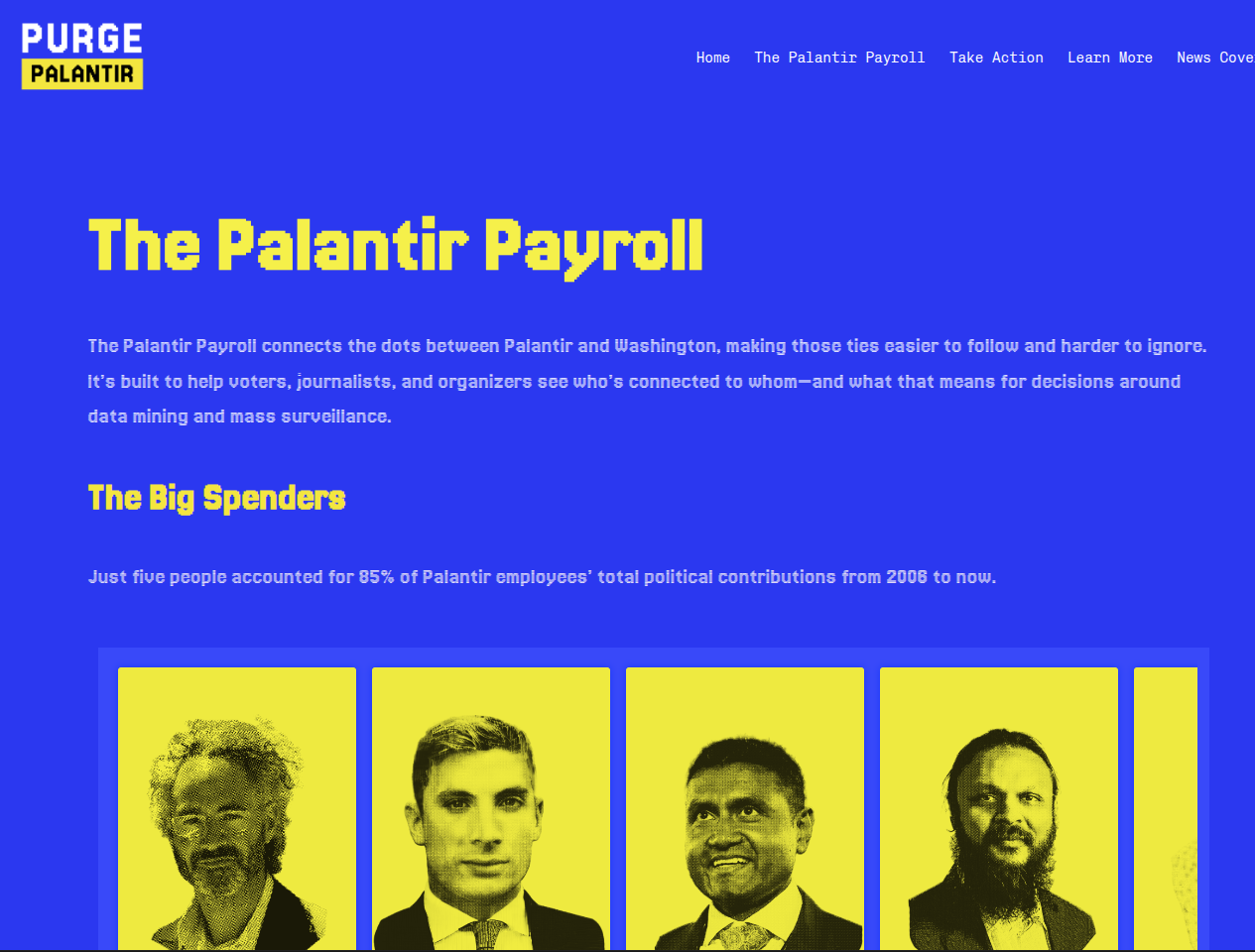 >Just five people accounted for 85% of Palantir employees’ total political contributions from 2006 to now.