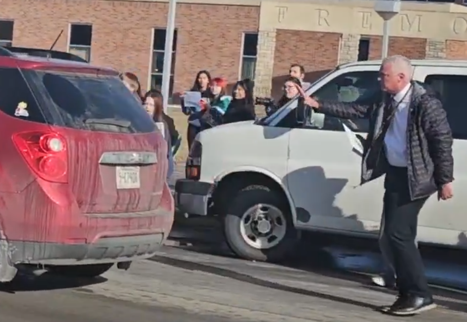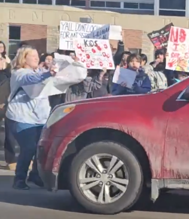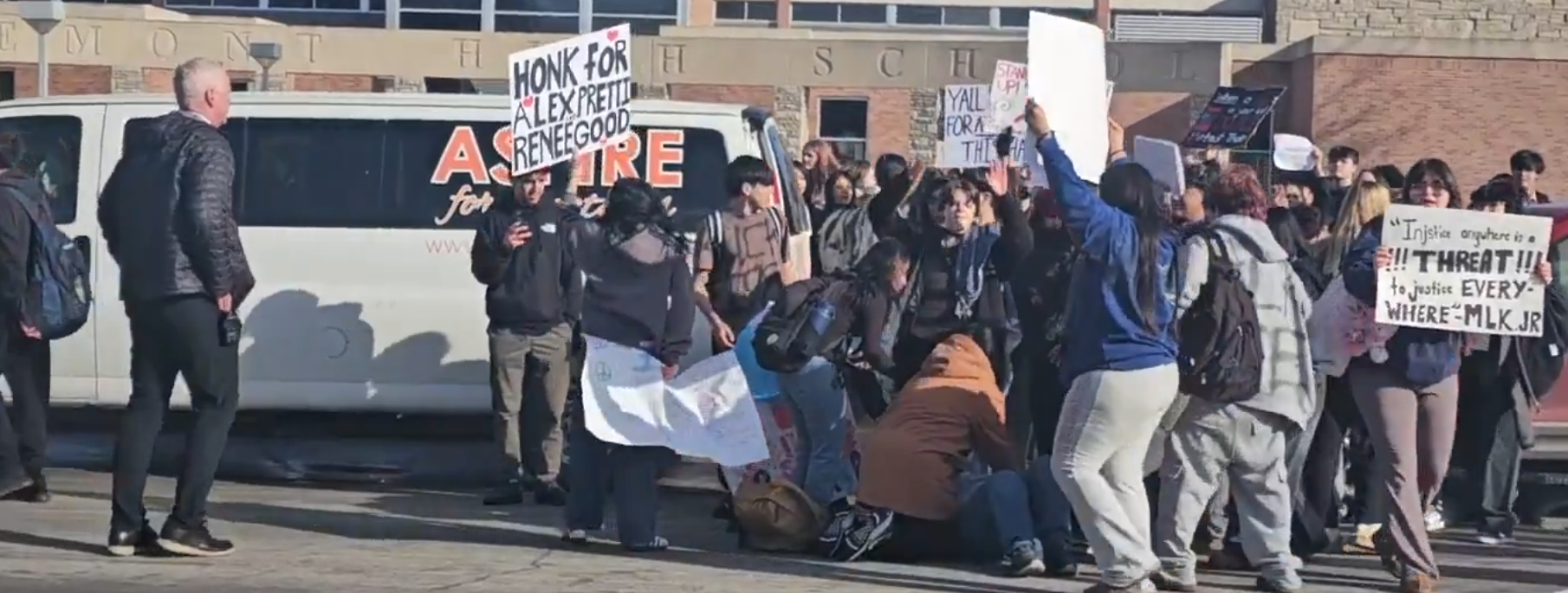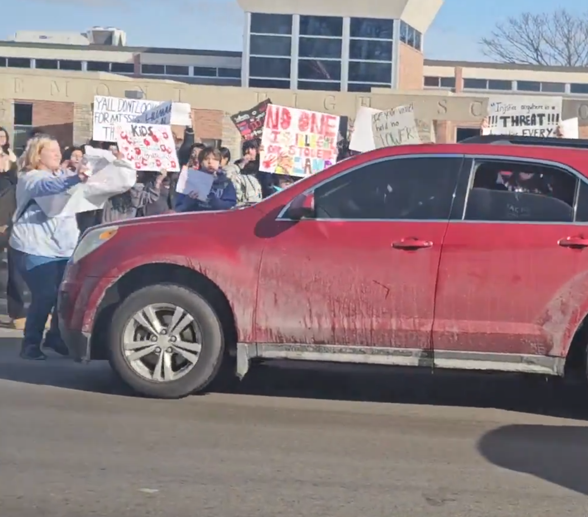 this dude is completely fucked running over a kid in front of a school
