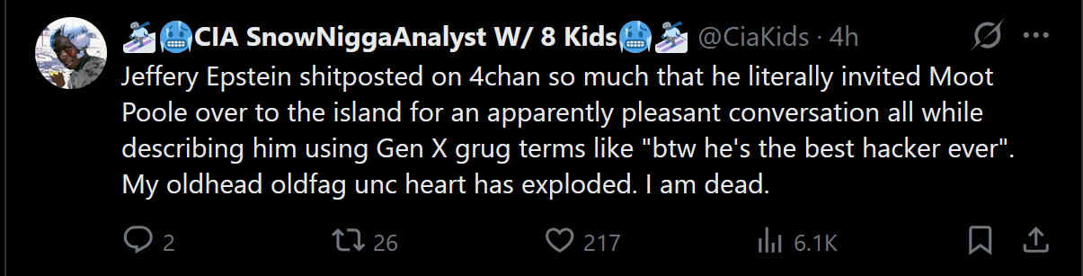 Well trump is officially cleared of the files lmao. All they have are shit rumours that agents didn’t waste the time investigating the schizos accusing him. Compare that to literally everyone else where they’re practically humping his leg in the emails to go to the island or get aids cream