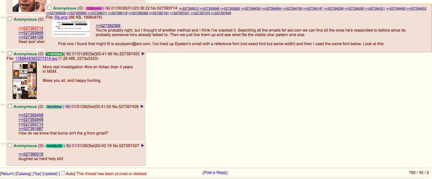 >>527402210>Also it was pointed out that epstein habitually used spelling and grammar mistakes perhaps to avoid fingerprinting his emailsThat would be counter productive.