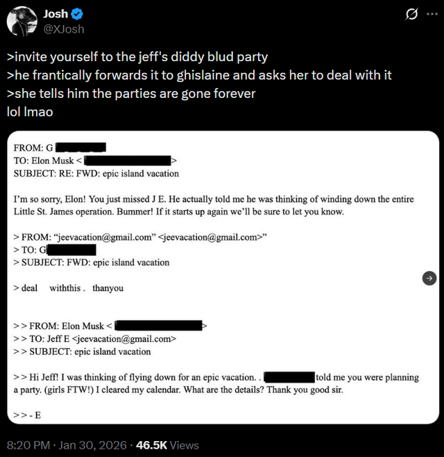 >>527404755No elon is in a different more protected group of elite predators whose organisation was/ is at war with Epsteins organisation. This email reads in a sarcastic non genuine tone where they are trying to play eachother. Elon is suggesting he knows about Epsteins activities and is saying he's onto them. Ghislane is covering the tracks and keeping away so he can't snoop. But it's also a fake psyop to make Elon look good, next the information will lead to Elon being a hero who was in on exposing it like Trump suggested he was.