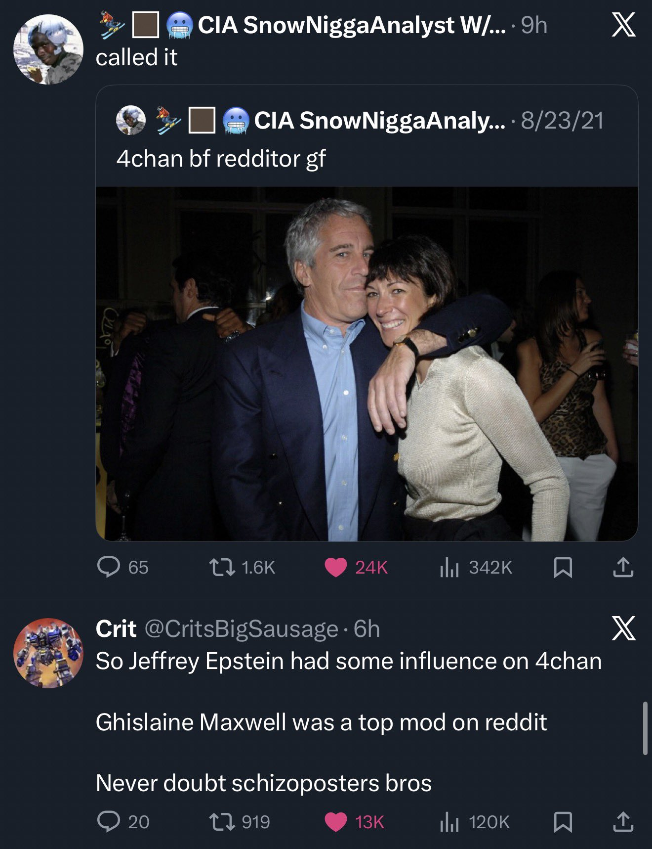 >Epstein was a 4chan userholy shit, who knows how many times I called him a faggot and never knew